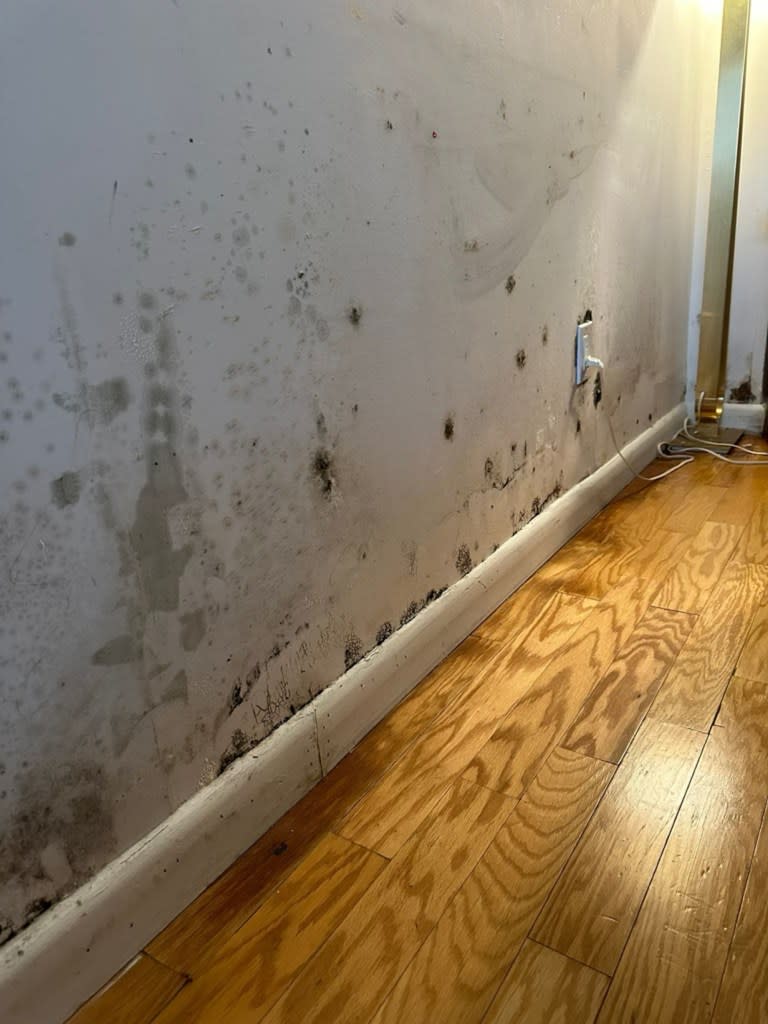 When workers returned 11 months later to address a second leak, they moved the family’s couch — and found mold growing on the wall and across the back of the sofa.